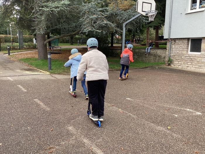 Die neuen Roller erfreuen sich großer Beliebtheit und werden in den Pausen begeistert genutzt. Neben viel Fahrspaß fördern sie Gleichgewicht, Koordination und Bewegung an der frischen Luft - wichtige Bausteine für die gesunde Entwicklung unserer Schülerinnen und Schüler.