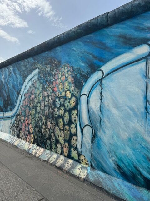 Am Freitag sind wir die ganze East Side Gallery entlanggelaufen. Das sind ganz viele bunte Bilder auf einer jetzt noch 1,3 km langen Mauer. Dann haben wir in einer Eisdiele lecker Eis gegessen. Die Bootsfahrt auf der Spree war auch toll, obwohl es etwas geregnet hatte, das Dach konnte man zu machen. Am Abend waren wir in einem japanischen Restaurant und konnten so viel essen, wie wir wollten! Wir haben ganz viel Essen probiert und Jasmin-Tee getrunken. Einige können schon voll gut mit Stäbchen essen.