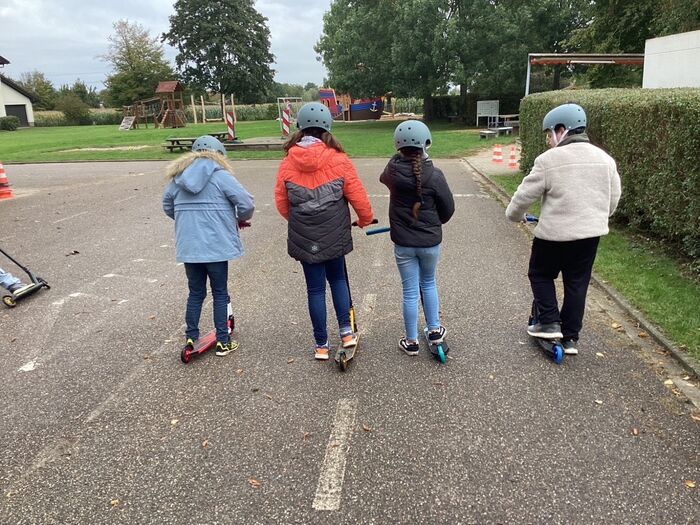 Die neuen Roller erfreuen sich großer Beliebtheit und werden in den Pausen begeistert genutzt. Neben viel Fahrspaß fördern sie Gleichgewicht, Koordination und Bewegung an der frischen Luft - wichtige Bausteine für die gesunde Entwicklung unserer Schülerinnen und Schüler.