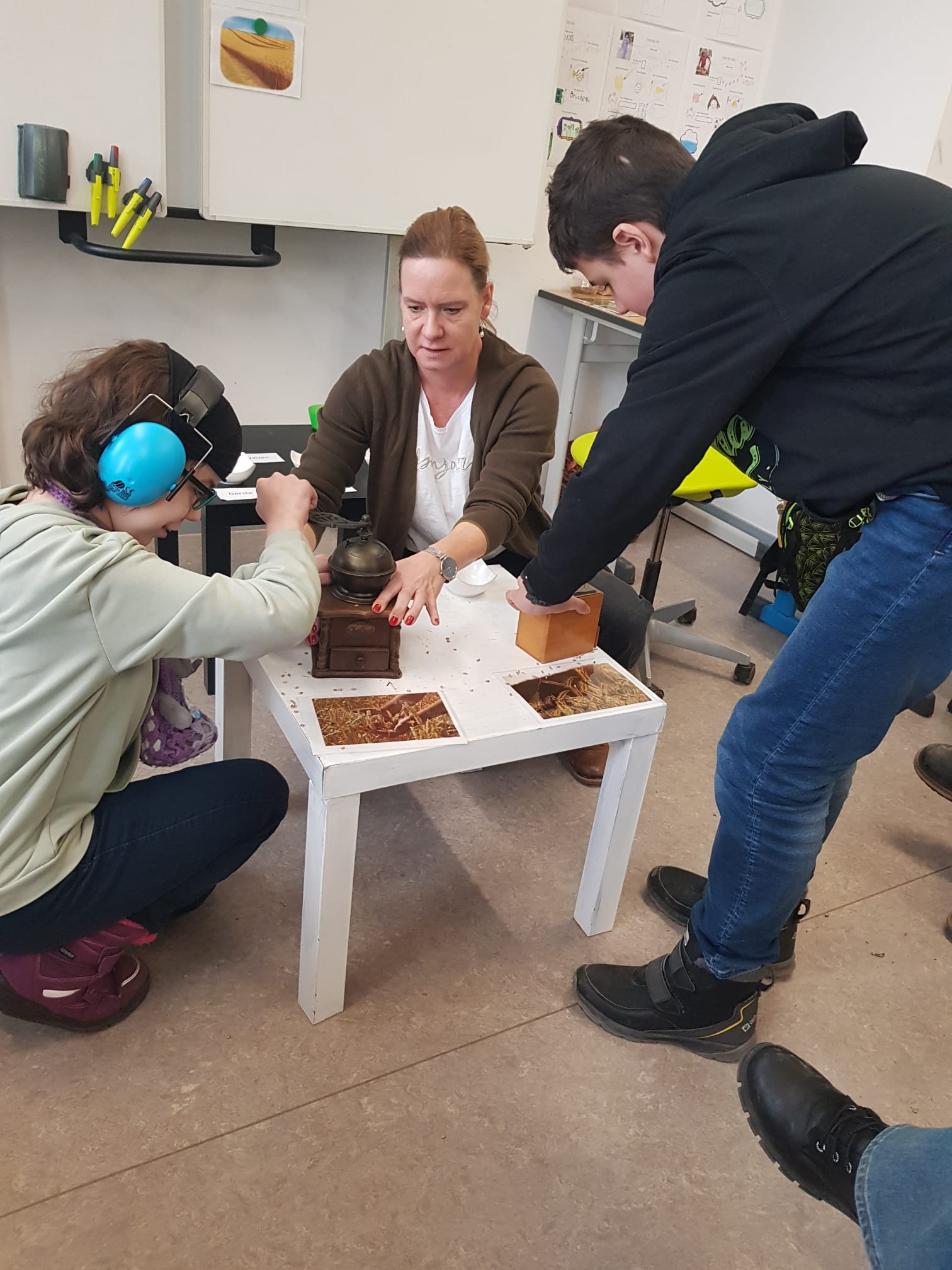 Zuerst haben wir einen kleinen Workshop über 3D-Drucker gemacht. Das war richtig spannend! Der Drucker druckt mit einer ganz langen Schnur aus Kunststoff auf so einer Rolle. Makerspace, so heißt der große Raum, wo wir noch viele andere coole Geräte gesehen haben. Wir haben iPads bekommen und durften uns ein Ding aussuchen, das wir gerne gedruckt haben wollten. Dann mussten wir es mit dem iPad bearbeiten, also die Größe und die Farbe einstellen. Danach haben wir alles dem netten Mann Christian vom Landesmedienzentrum mit dem iPad geschickt. Der Drucker braucht so richtig lange um alles zu drucken, also 11 Stunden!!! So lange konnten wir ja nicht warten, sonst müssten wir bis nachts dortbleiben. Deshalb schickt uns der Mann unsere Sachen, wenn sie fertig sind, mit der Post. Da freuen wir uns schon!
